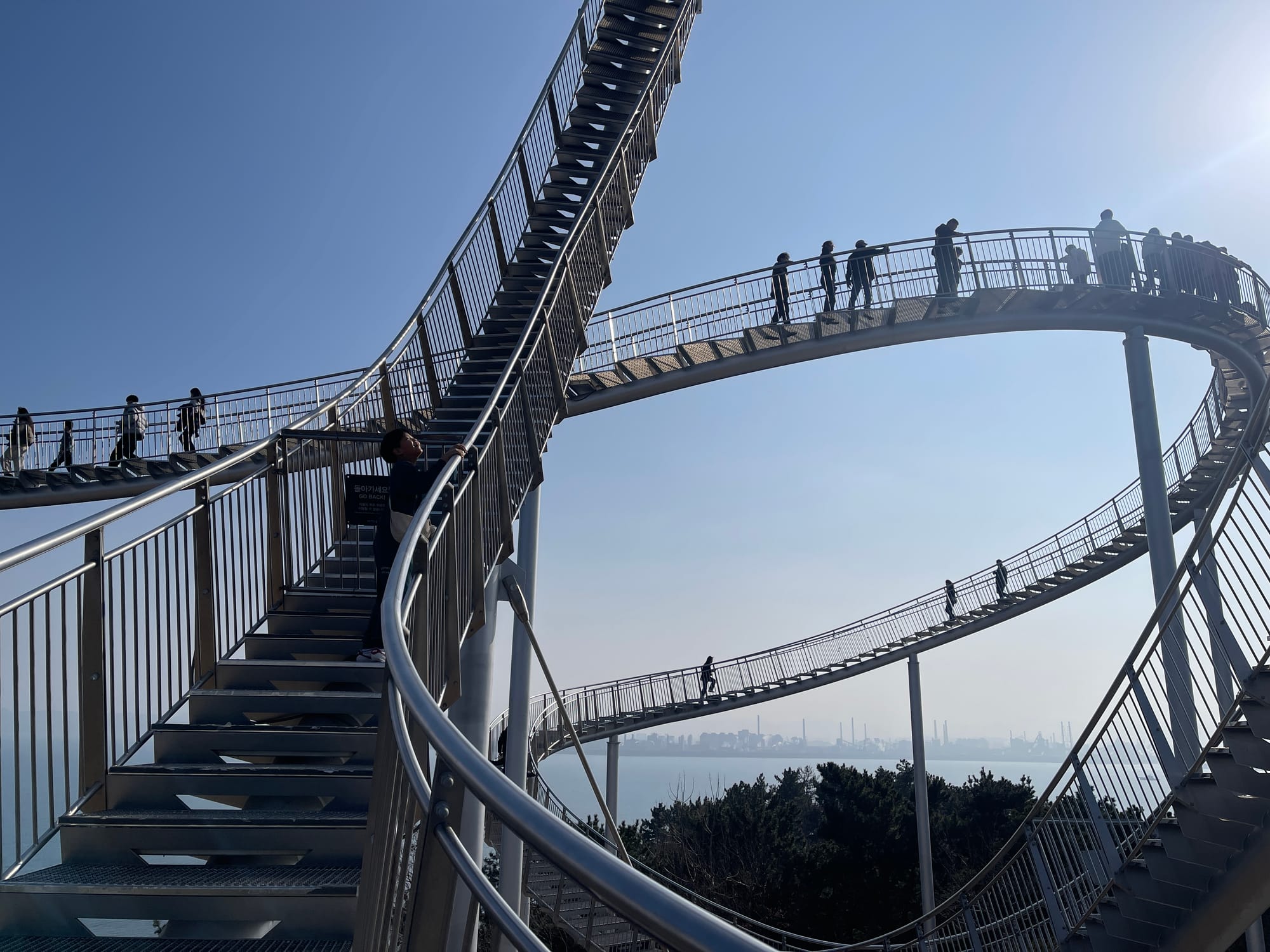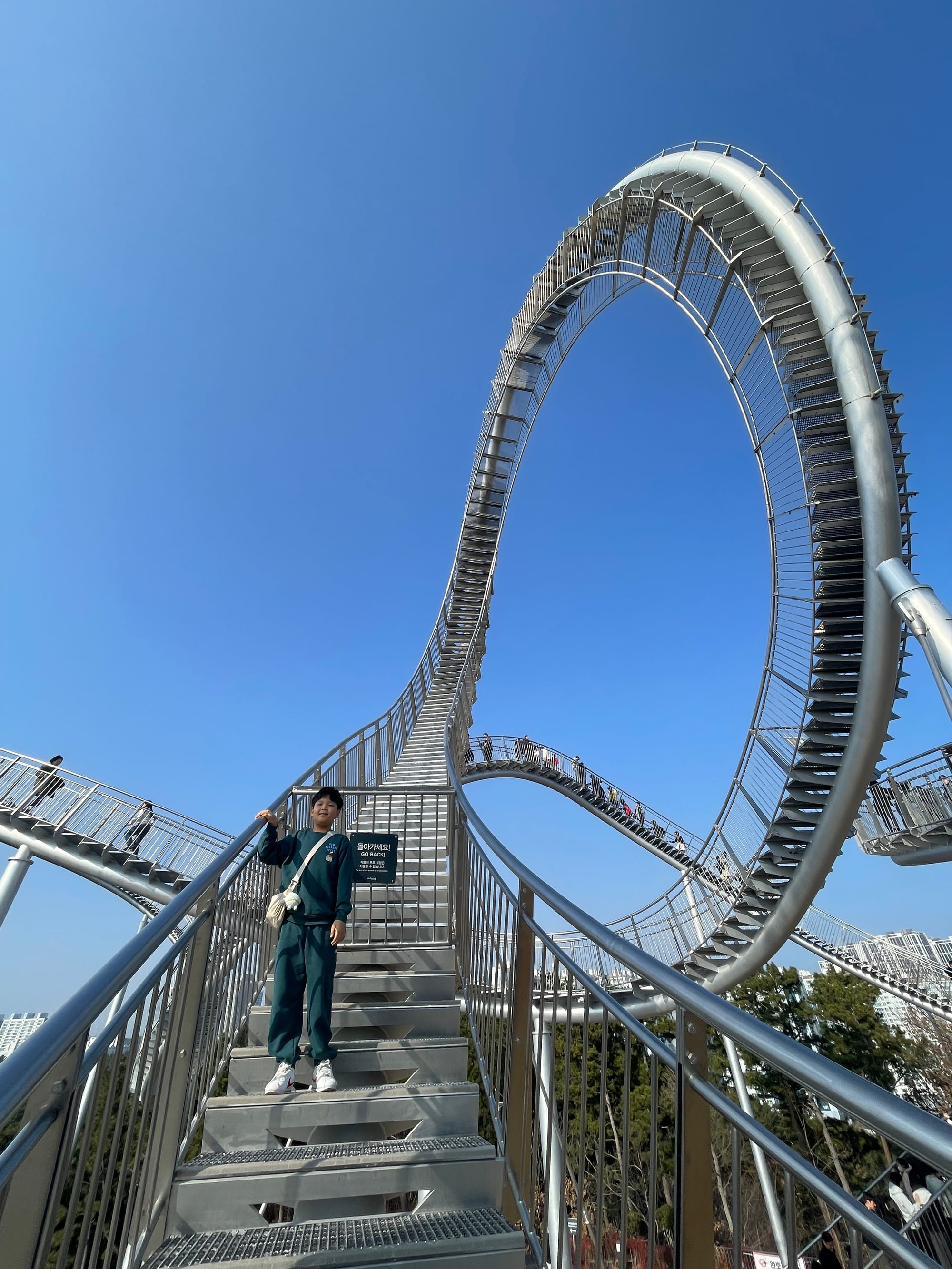 걸어서 우주를 유영하는 기분이 들기도 하고, 롤러코스트 같은 코스를 걸어서 갈 수 있어 스릴넘치는 경험을 할 수 있다. 무료로 멋진 조형물이자 건축물을 체험할 수 있고, 아이와 함께 즐거운 추억을 남길 수 있어 우리는 또 방문하자며 약속하며 내려왔다.